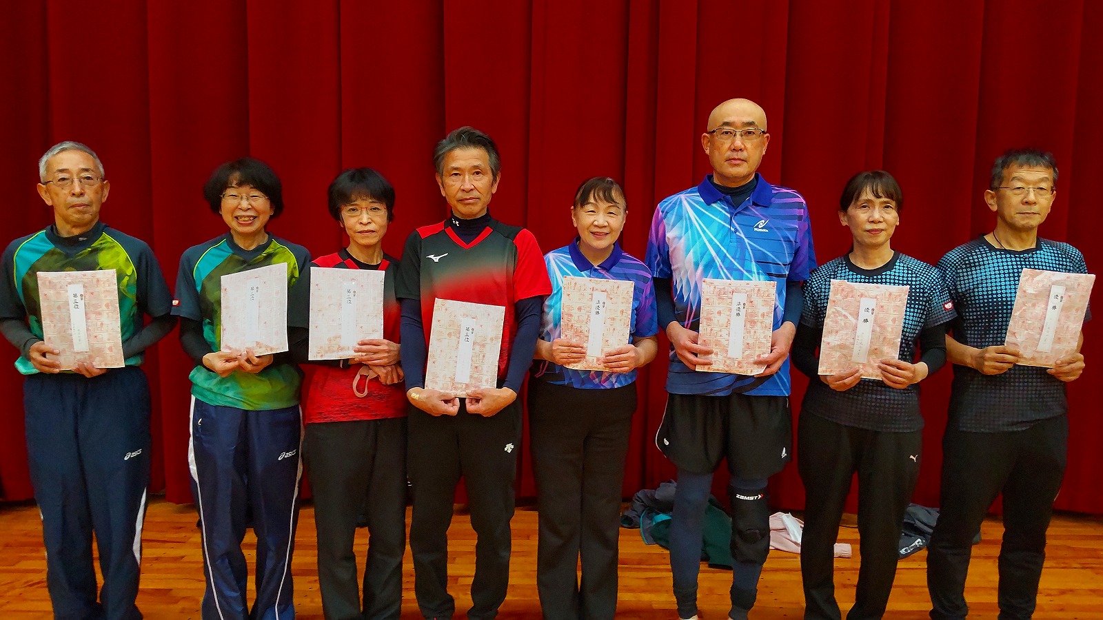 ラージボール混合ダブルス120歳以上で上位入賞された皆さん |